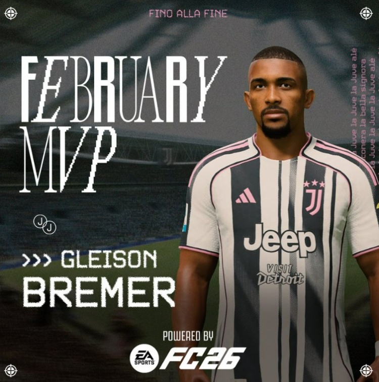 3月5日讯 尤文官方消息,后防中坚布雷默当选球队2月份最佳球员。